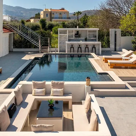 A Villa Irene Royale - Pool - Sea View - Free Cruise felszerelt konyhát, valamint étkezőt és kültéri étkezőhelyet kínál a főzéshez és étkezéshez. Az ételek elkészítéséhez mosogatógépet, kávé/tea készítőt és konyhai edényeket is igénybe vehet. Az ingatlantól közelében található Gyros Grill by Vassilis Mediterrane fogásokat szolgál fel.